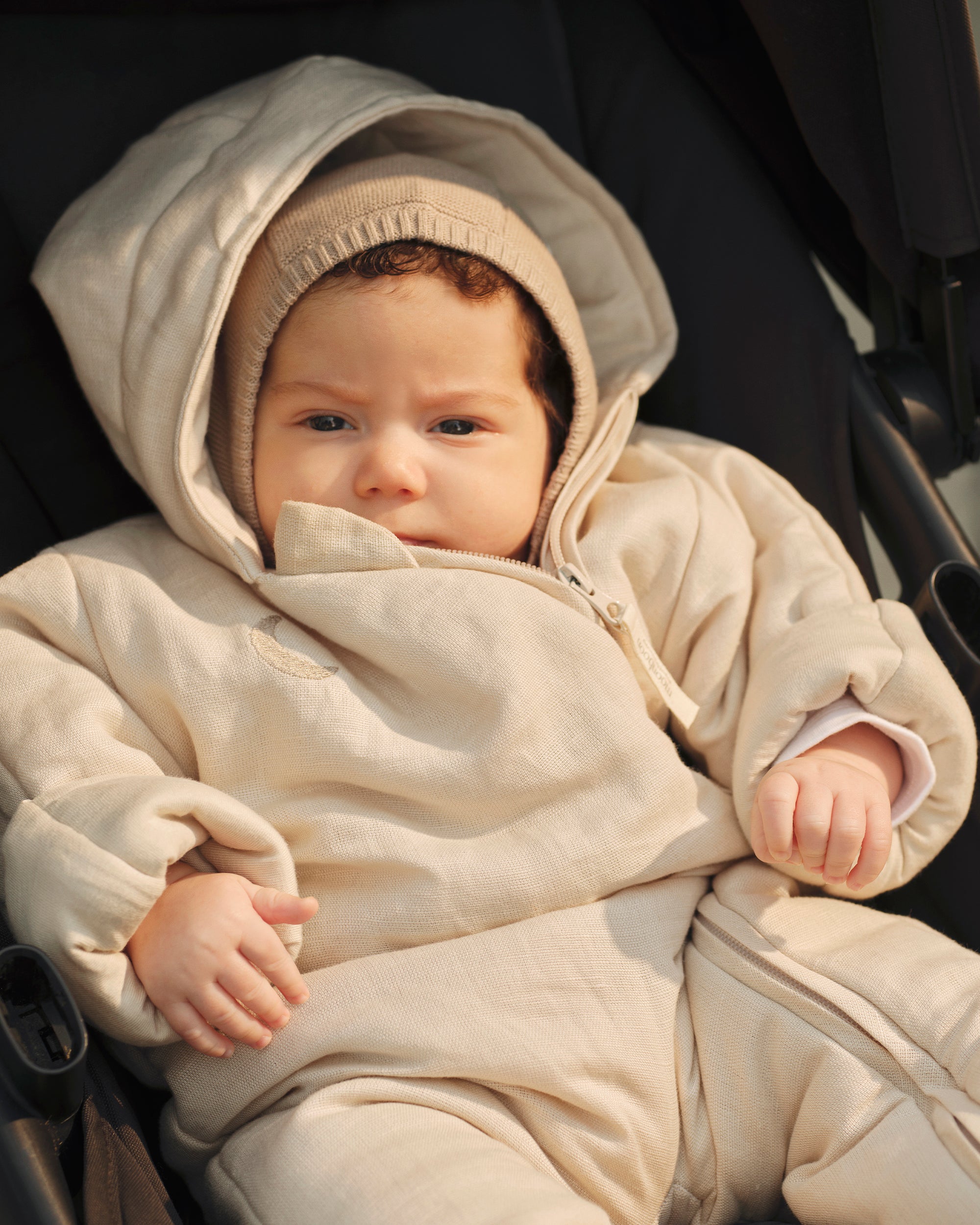 Vår myke heldrakt passer perfekt for turer i barnevognen eller i bæreselen, og den kombinerer stil med komfort i alle detaljer.