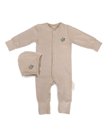 Gjennomtenkt designet for å gi babyen komfort til den første tiden. Dette fine settet inkluderer en myk, tettsittende sparkedrakt og en hjelmlue – hvor begge er laget for å holde den lille komfortabel fra topp til tå.