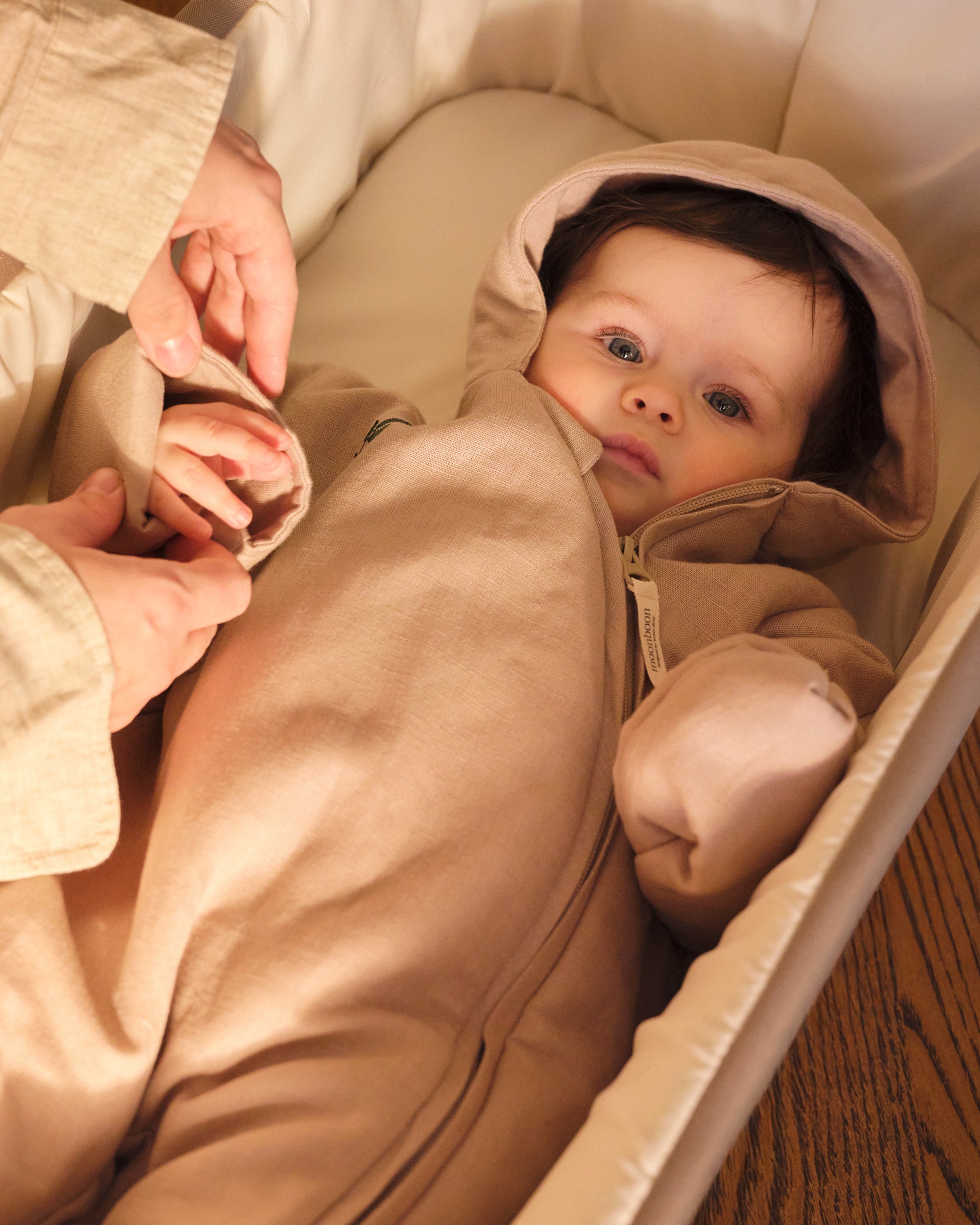 Vår myke heldrakt passer perfekt for turer i barnevognen eller i bæreselen, og den kombinerer stil med komfort i alle detaljer.