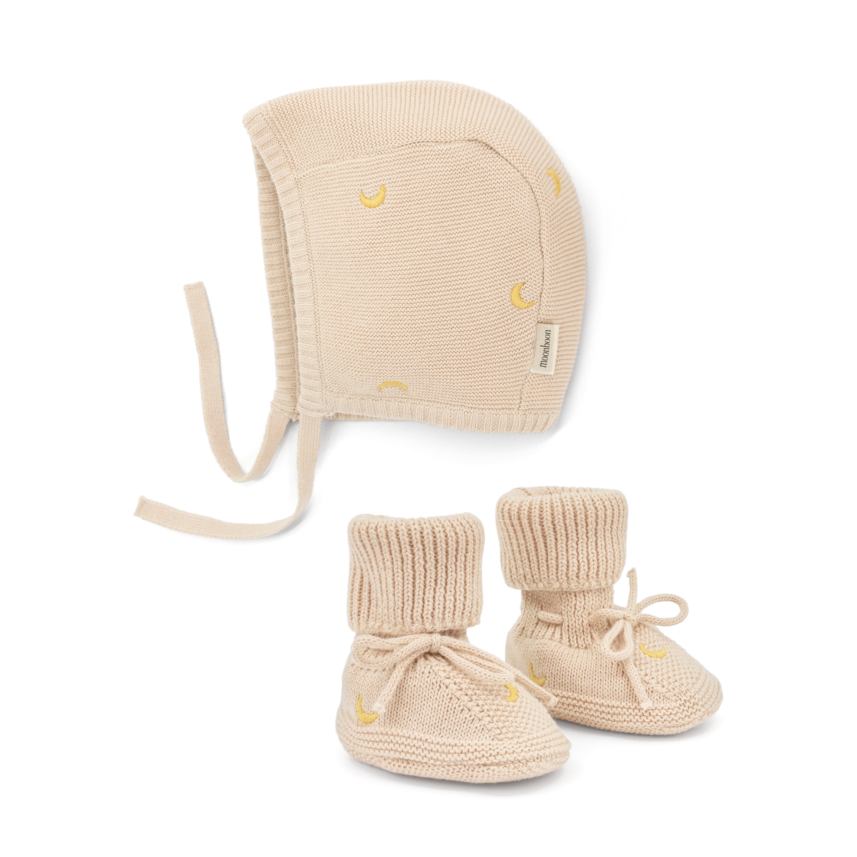 Ønsk en ny baby velkommen til verden med dette søte gavesettet, som inneholder en koselig strikket kyse og matchende myke sko.