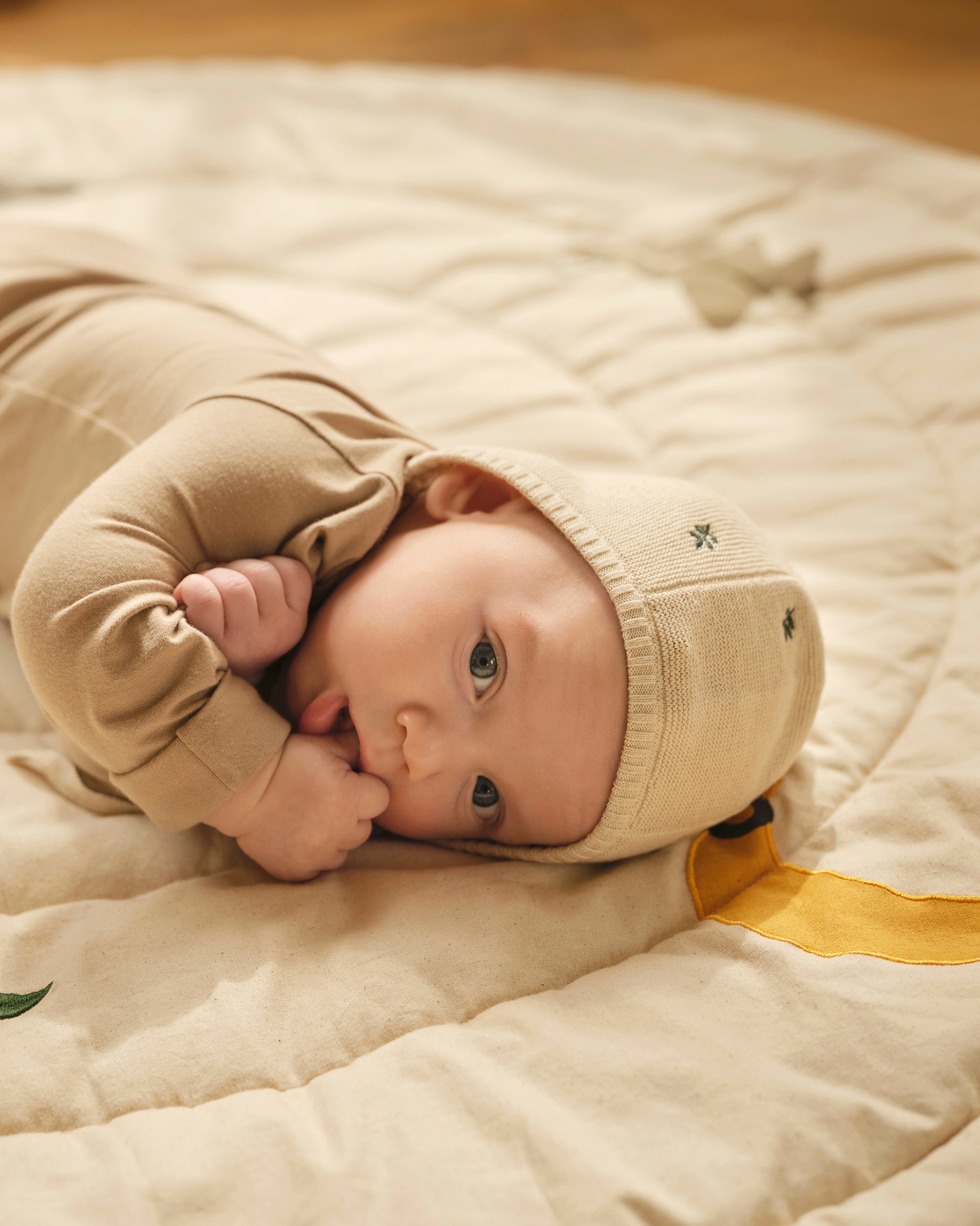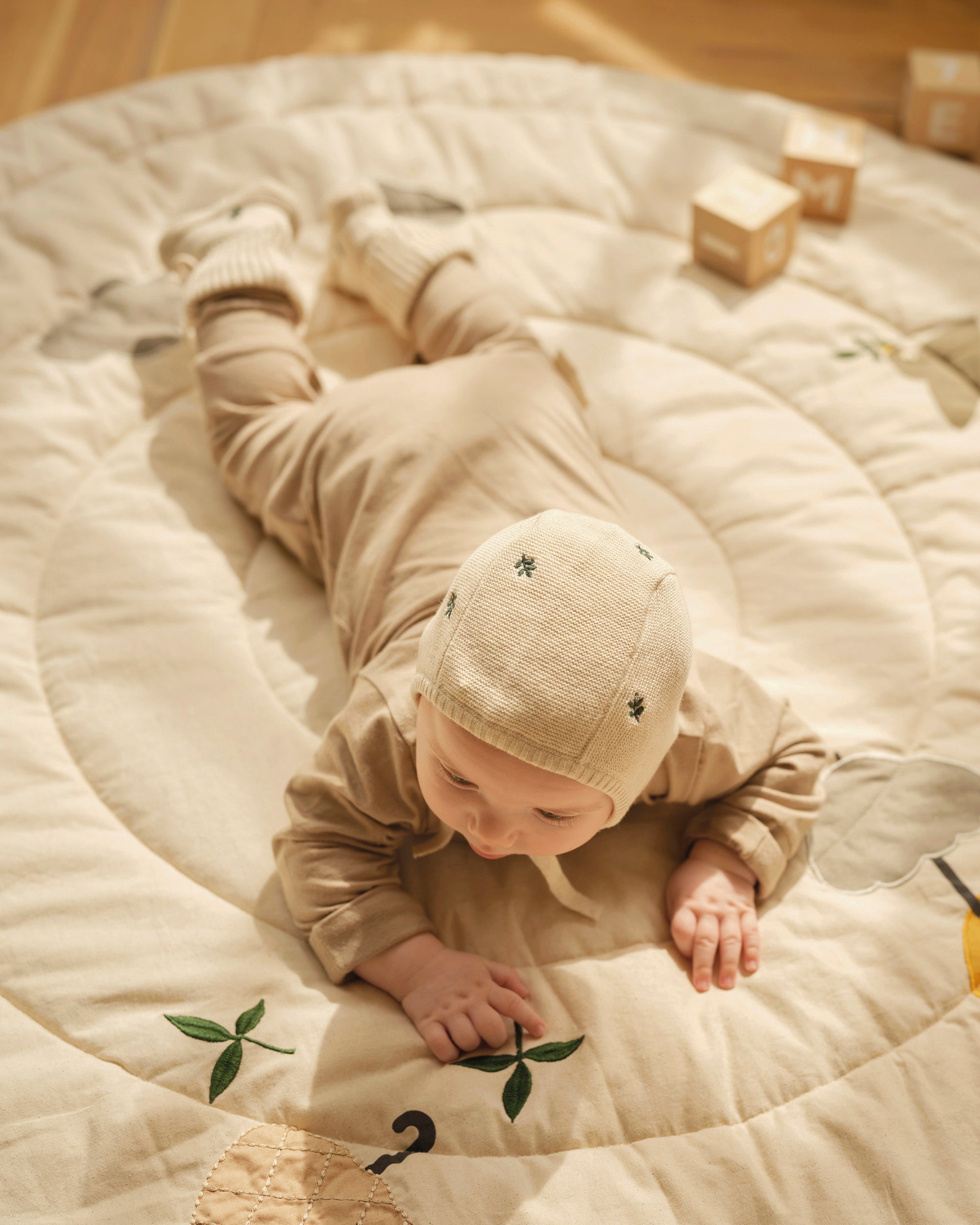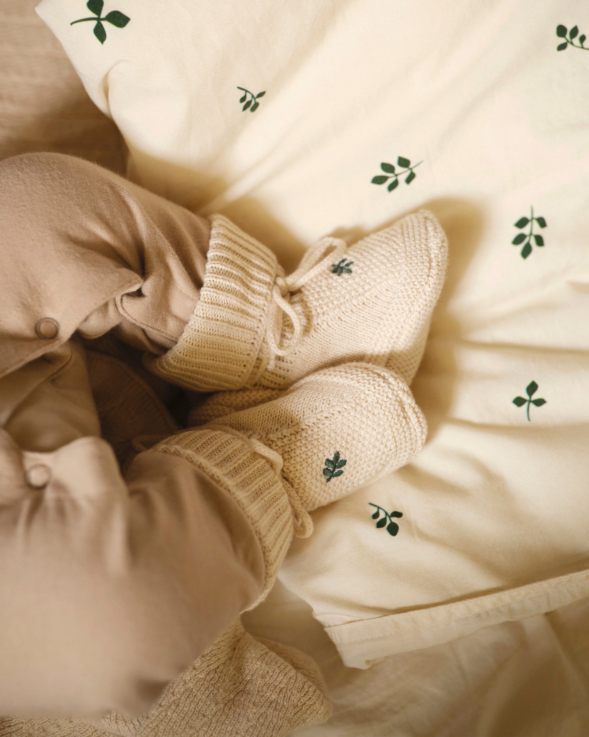 Det delikate strikketøyet er laget av myk, pustende økologisk bomull, som er skånsomt mot sensitiv hud og gir varme og komfort hele dagen.