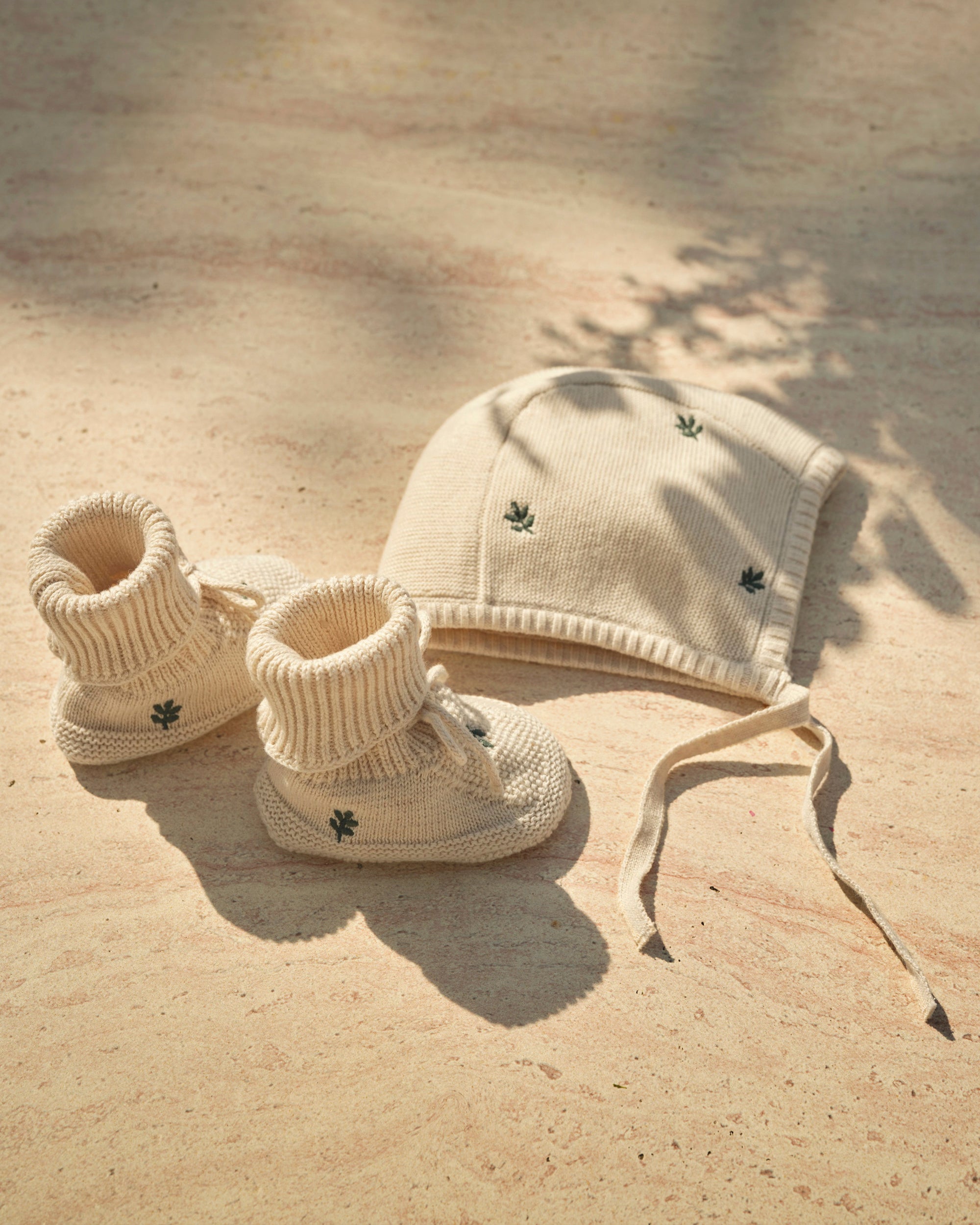 Matchende, strikkete kyse og sko, som er laget med omtanke i sertifisert økologisk bomull med delikat broderi, holder babyen varm og komfortabel hele dagen. Et søtt valg for et hjemkomstantrekk etter fødsel, eller en gjennomtenkt gave hele året.