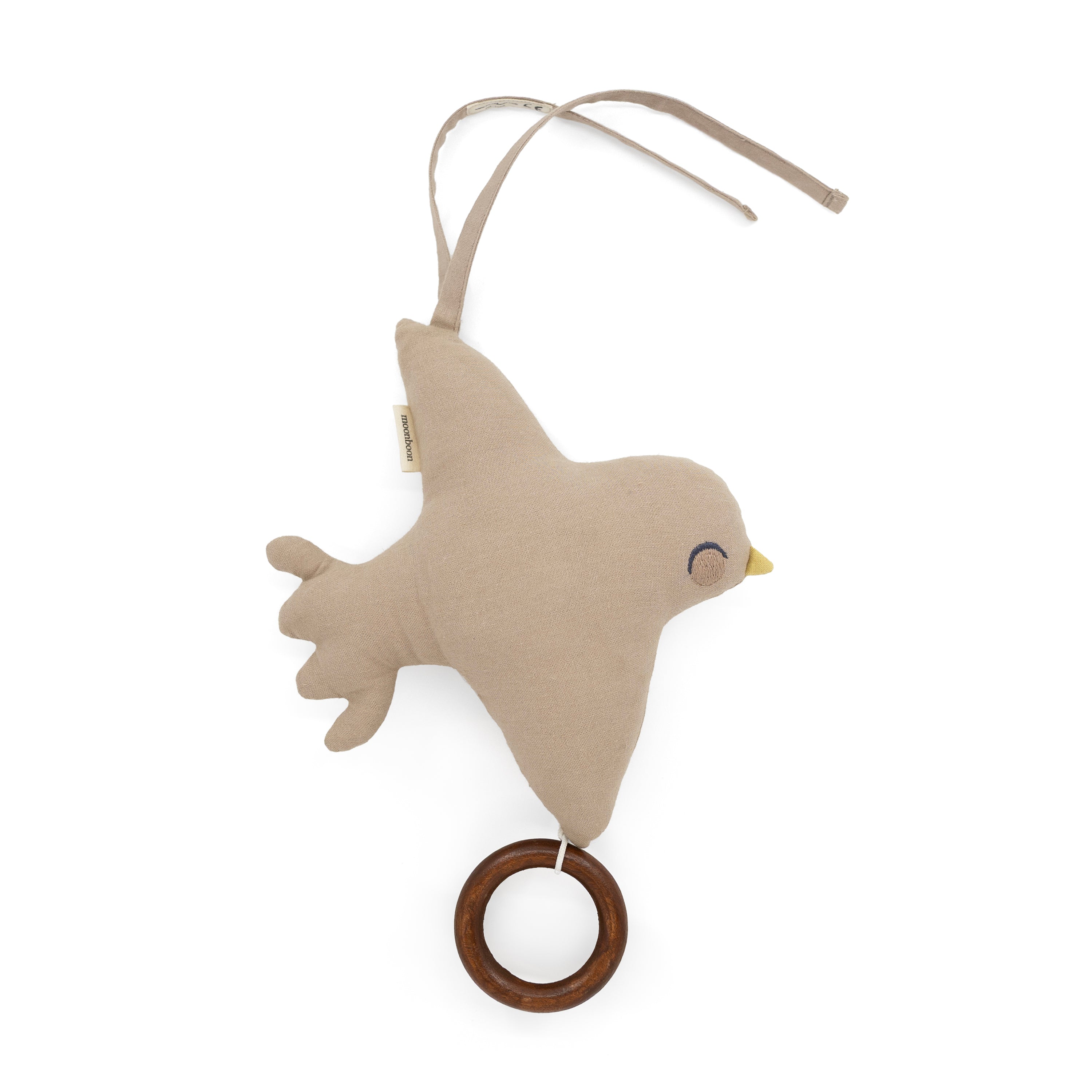 Velg mellom to sjarmerende design: En vattert måne i en beroligende naturfarge, eller en jordfarget, grasiøs fugl. Begge versjonene er laget med omtanke av sertifisert økologisk bomull, med fokus på naturlige materialer og en vakker estetikk, som passer sømløst inn i ethvert barnerom.