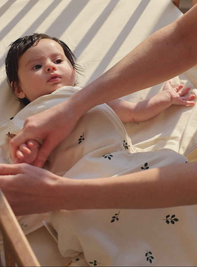 Dette svøpet er tilgjengelig både i ensfargede og mønstrede varianter, og inkluderer en lydsvak glidelås som går fra brystet til foten, noe som gjør bleieskiftet enkelt og med minimal forstyrrelse. Borrelåslukkingen sikrer en trygg passform og lar svøpet vokse med babyen din, noe som gjør leggetiden enkel og stressfri.